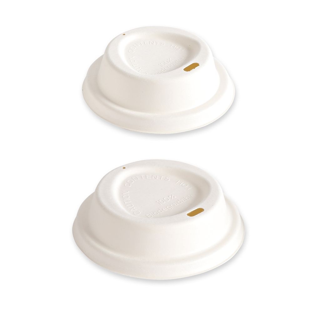 Bio Deckel aus Zuckerrohr mit Trinköffnung – nachhaltige, kompostierbare To-go-Deckel, 20x50 Stück