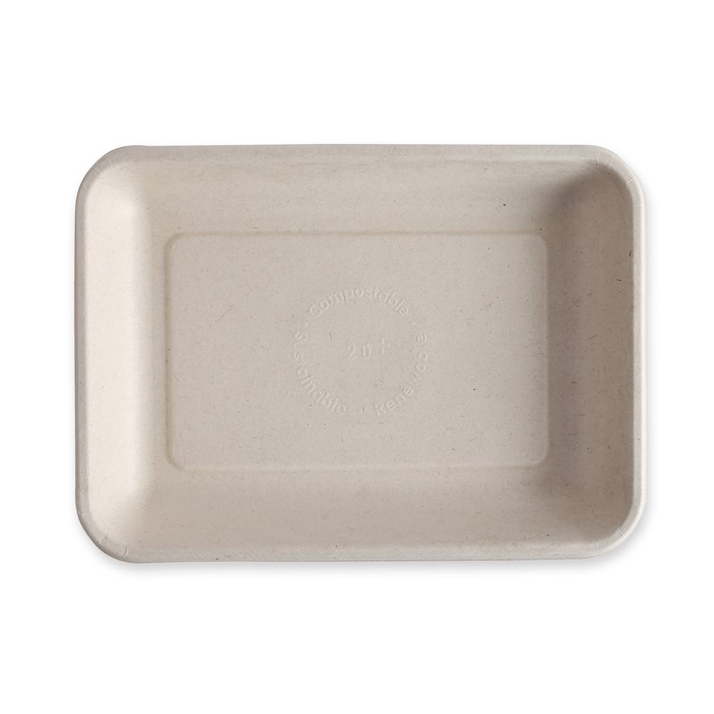 Produktinformationen "Bio Foodtrays rechteckig aus Zuckerrohr – nachhaltige kompostierbare Einwegschalen, 4x125 Stück"