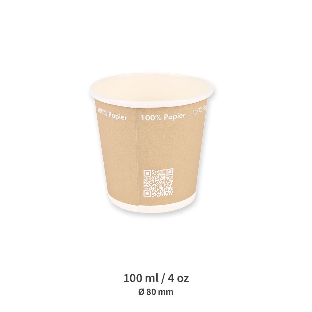 Der Bio Kaffeebecher Only Paper von Franz Mensch ist ein einwandiger Kaffeebecher aus 100% Papier ohne jegliche Kunststoffbeschichtung. Durch die wasserbasierte Versiegelung der Innenfläche bleibt der Becher stabil und dicht, ist lebensmittelecht und eignet sich sowohl für Heiß- als auch Kaltgetränke. Besonders hervorzuheben ist, dass dieser Becher vollständig über das Altpapier recyclebar ist und somit eine Lösung für das drängende Entsorgungsproblem herkömmlicher Pappbecher mit Plastikbeschichtung bietet. Der Becher hat ein Fassungsvermögen von 100 ml, eine angenehme Haptik und ist nachhaltig produziert. Er bietet eine umweltfreundliche Option für Coffee-to-go-Geschäfte, Gastronomie und Veranstaltungen, die Wert auf Plastikfreiheit und Recycling legen.