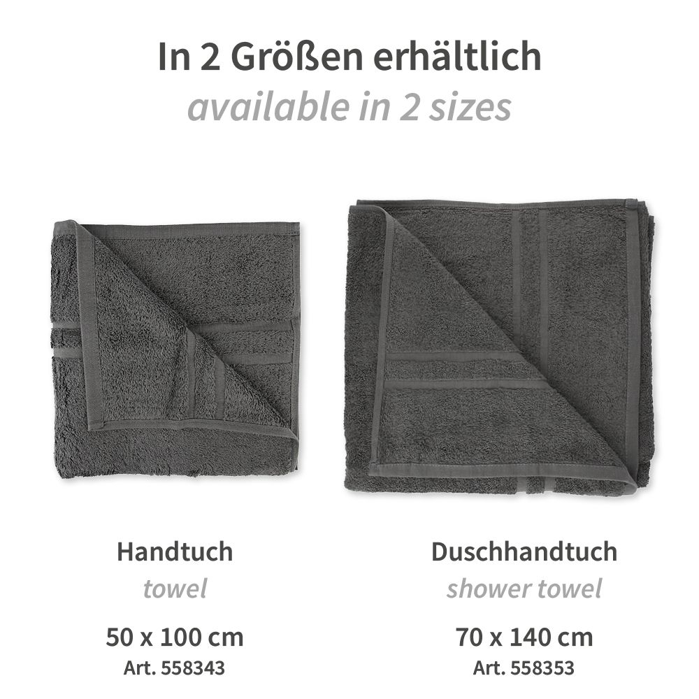 Zwei Größenvarianten: kleines Handtuch und Duschhandtuch