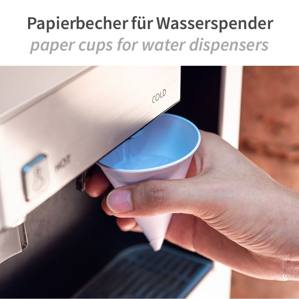 Da die Becher ohne Kunststoffbeschichtung auskommen, sind sie eine ressourcenschonende Alternative zu herkömmlichen Einwegbechern und ideal für Unternehmen, die Nachhaltigkeit und Hygiene gleichermaßen priorisieren. Die zertifizierte Qualitäts- und Lebensmittelechtheit sorgt dafür, dass die Spitzbecher bedenkenlos im Kontakt mit Trinkwasser eingesetzt werden können.