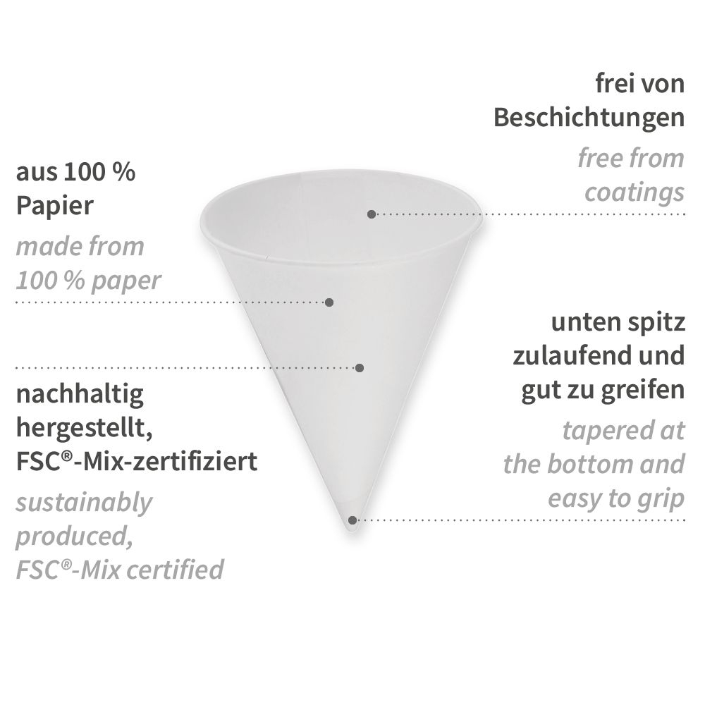 Nachhaltige Papier-Spitzbecher für Wasserspender | FSC®-Mix | 100 ml & 120 ml, 25x200 Stück