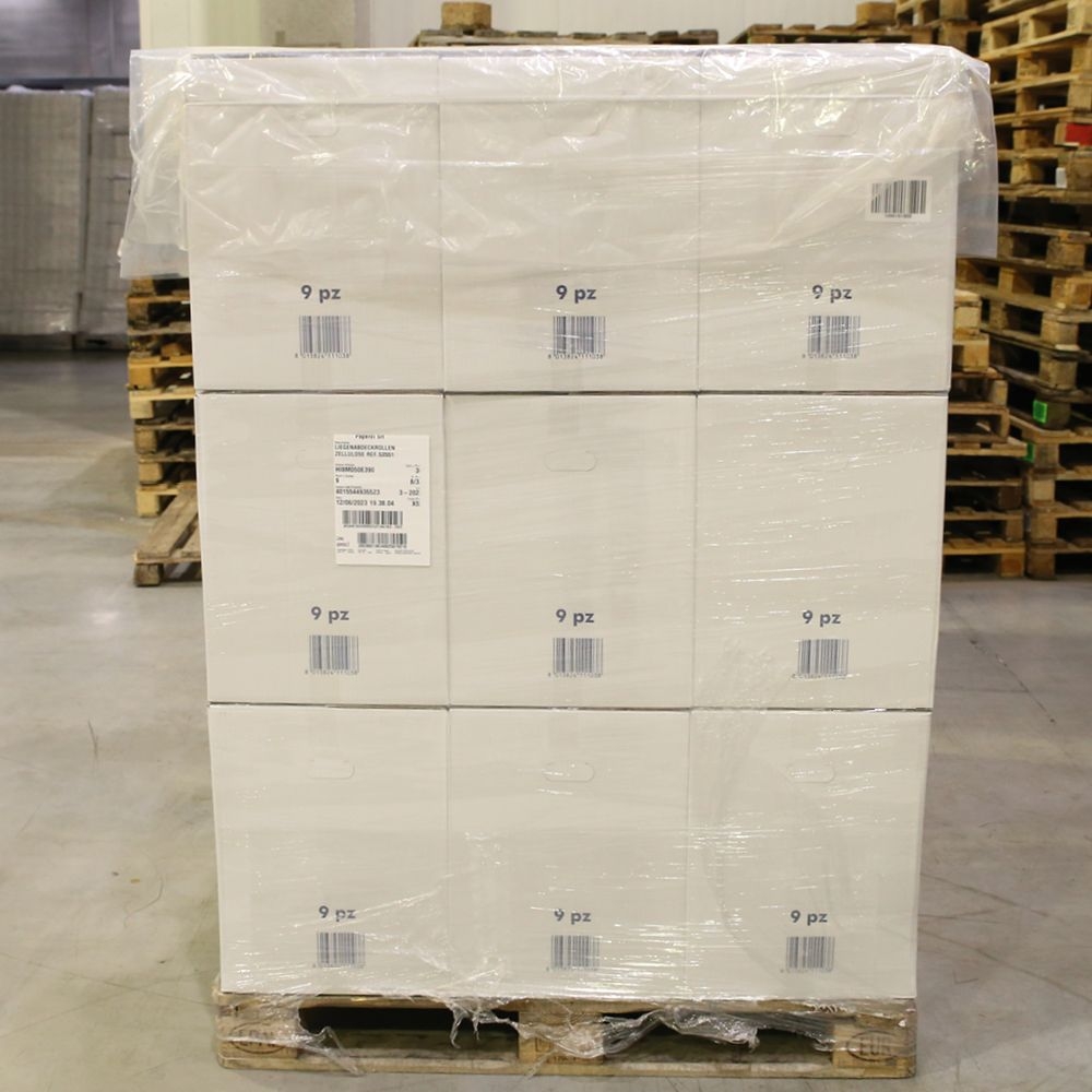 Das Material ist fusselfrei, wasserdicht und lebensmittelecht zertifiziert, was die Palettenhauben besonders geeignet für hygienebewusste Bereiche wie Lebensmittelindustrie und Logistik macht. Die Lieferung erfolgt in wirtschaftlichen Kartons mit je 150 Stück, die eine einfache Handhabung und Lagerung ermöglichen.