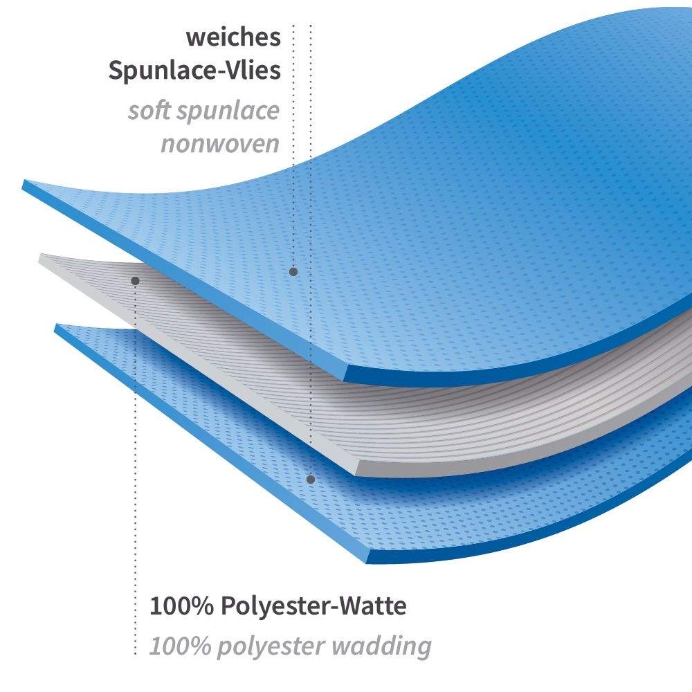 Außenseite: strapazierfähiges Spunlace-Vlies, atmungsaktiv und sehr weich