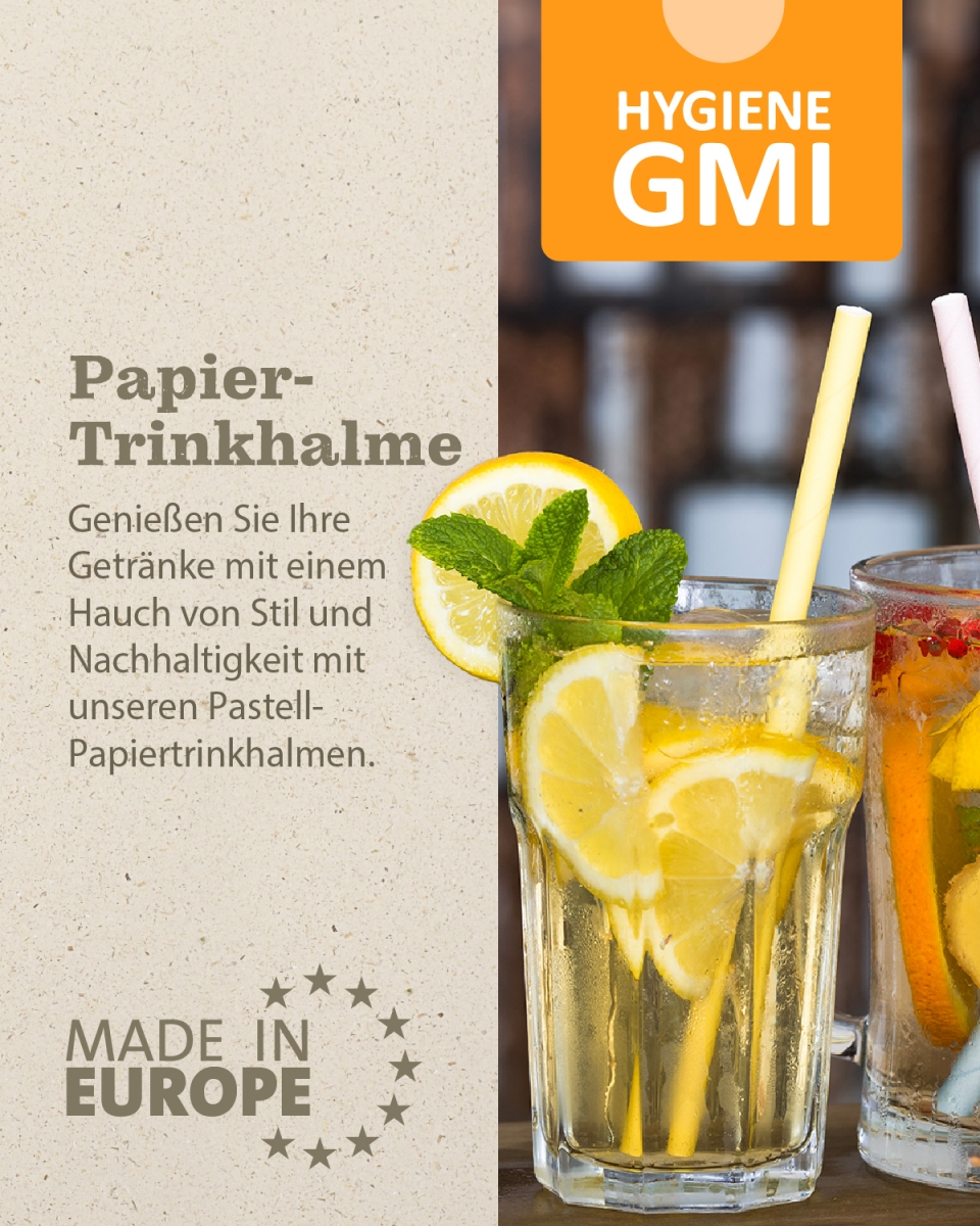 Genießen Sie Ihre Getränke mit einem Gefühl von Eleganz und Nachhaltigkeit mit unseren Papiertrinkhalmen und setzen Sie gleichzeitig ein Zeichen für umweltbewusstes Handeln und Stil.