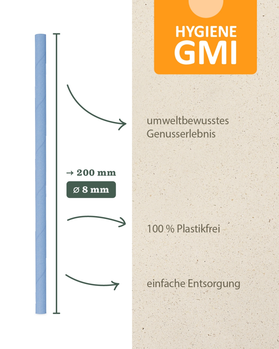 Mit einem Durchmesser von 8 mm und einer kompakten Länge von 20 cm sind diese Trinkhalme perfekt für eine Vielzahl von Getränken geeignet. Sie sind robust und dennoch biologisch abbaubar, was sie zu einer verantwortungsbewussten Wahl für den Umweltschutz macht.
